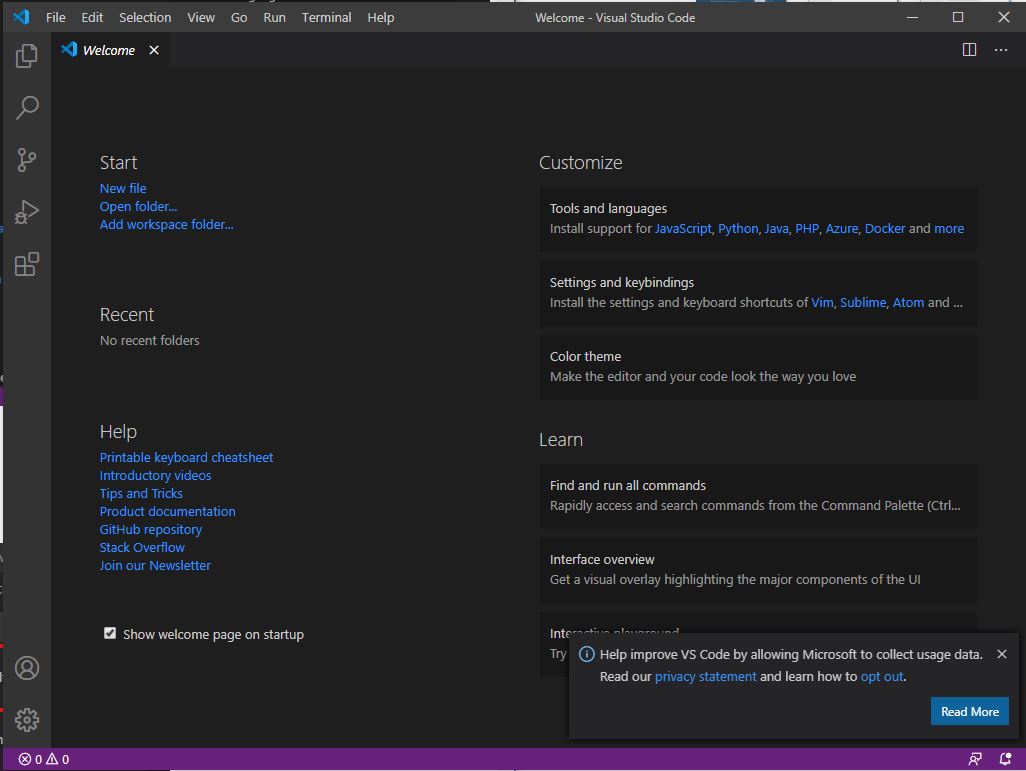 Visual Studio Code 메인화면입니다.