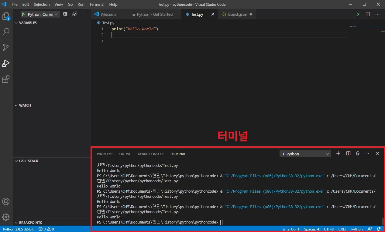여기까지 파이썬 개발환경 셋팅이었습니다.