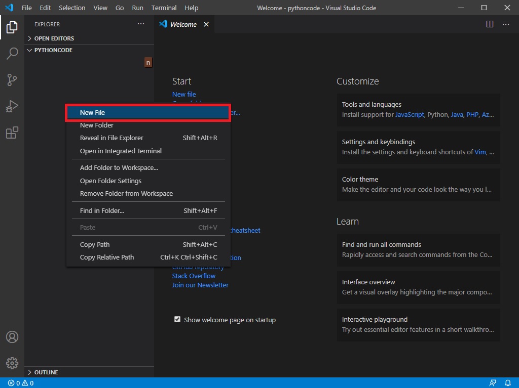 폴더를 선택하셨으면 위와 같이 빈 곳을 클릭하고 New File을 만들어줍니다.