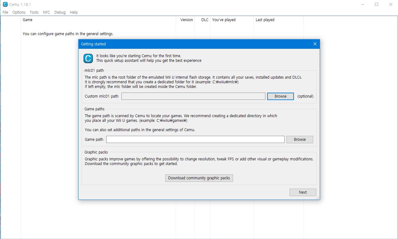 게임 내부 데이터를 저장할 폴더(mlc01 폴더)를 지정해주는 창이 나오는데