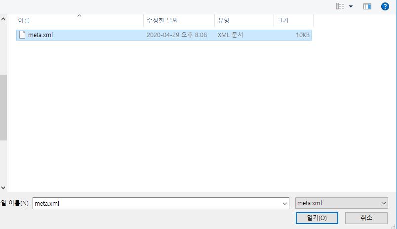 그 안에있는 meta.xml 파일을 선택하시면 됩니다.